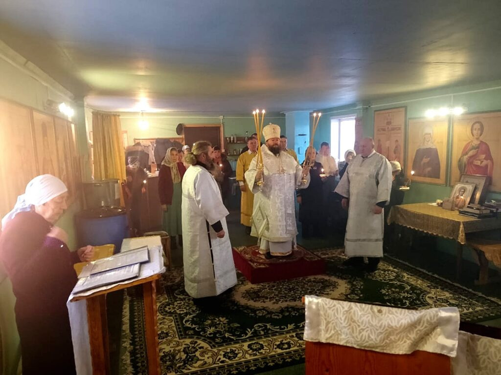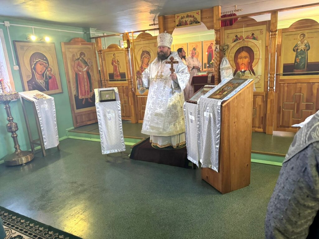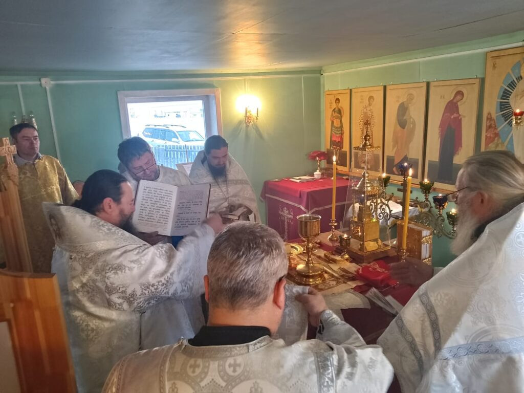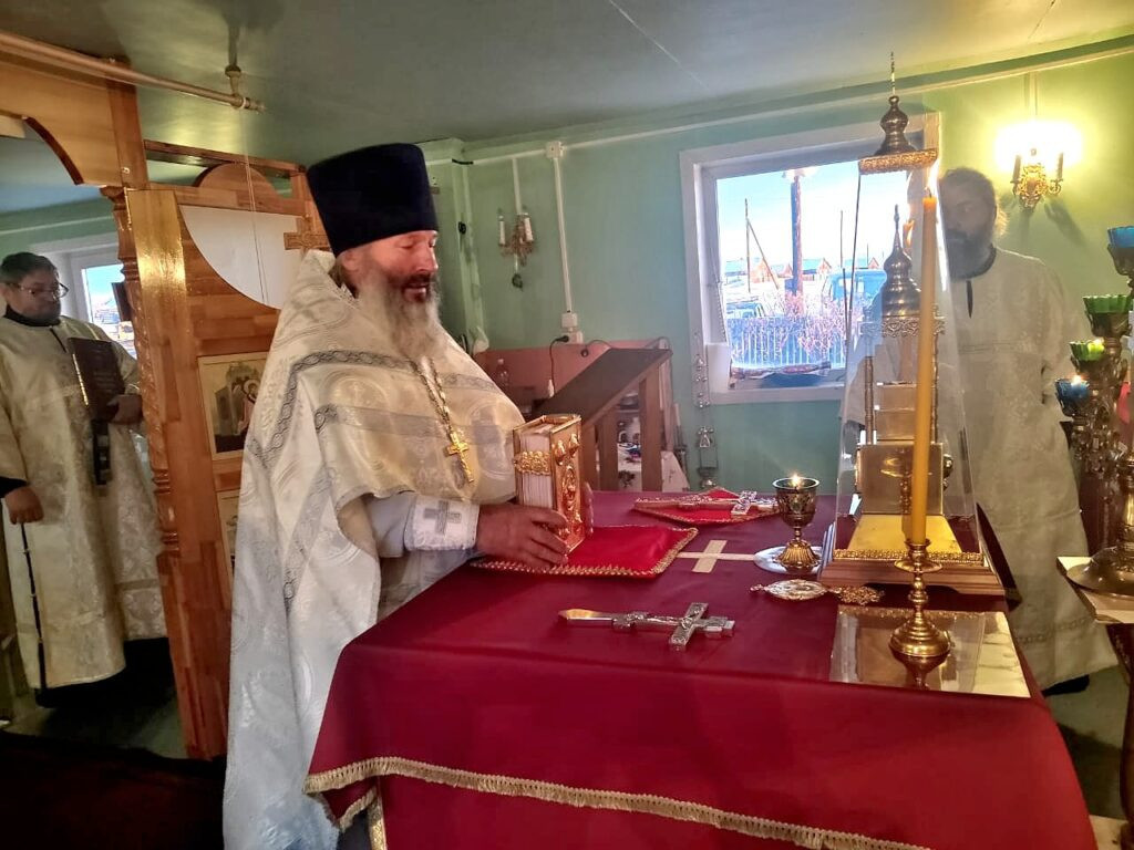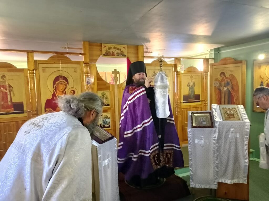 Его Преосвященству сослужили: настоятель Михаило-Архангельского храма с. Тыргетуй иерей Валерий Шемелин, клирик Воскресенского кафедрального собора г. Нерчинска иерей Роман Пичуев.